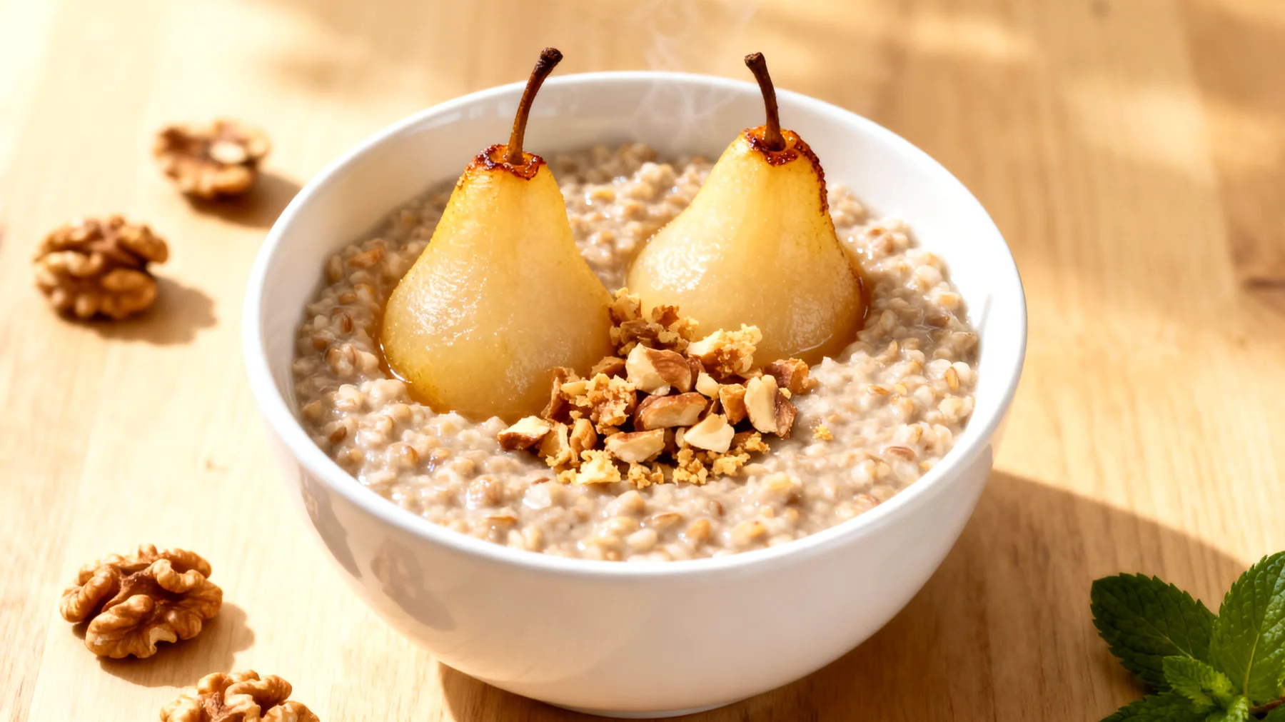 Wer kennt das nicht: Der Wecker klingelt, doch statt erfrischt fühlt man sich wie gerädert. Besonders in stressigen Lebensphasen wird erholsamer Schlaf zur Rarität. Dabei beginnt guter Schlaf oft schon beim Abendessen – und genau hier setzt eine überraschend wirksame Kombination an: Buchweizen-Porridge mit gedünsteten Birnen und Walnüssen. Was zunächst nach einem gewöhnlichen Frühstück klingt, entpuppt sich als wissenschaftlich fundierte Abendmahlzeit für alle, die nachts endlich wieder durchschlafen möchten.