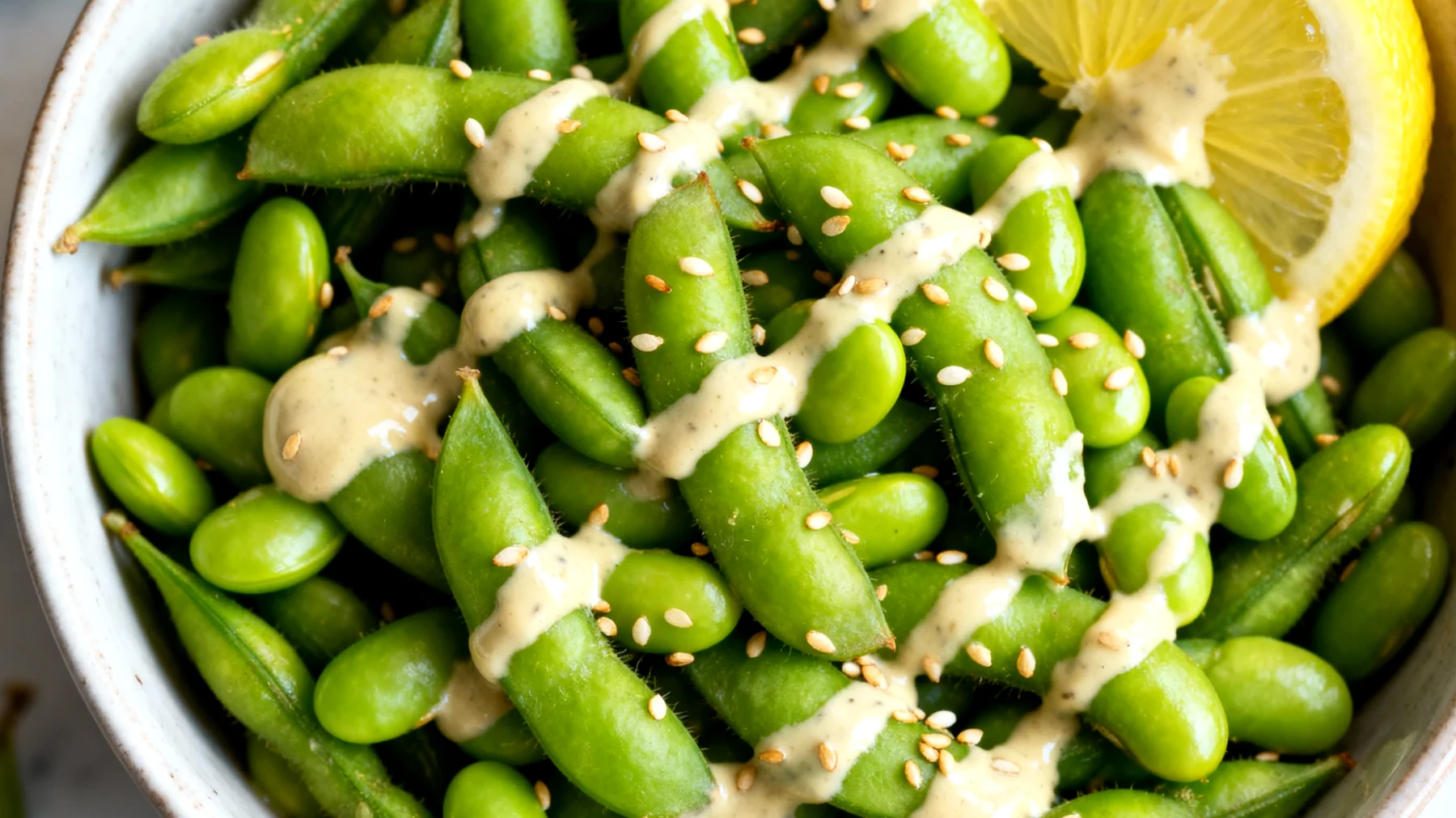 Die cremige Sesampaste aus dem Nahen Osten ergänzt die Edamame auf ideale Weise. Während die Bohnen mit Proteinen punkten, liefert Tahini gesunde ungesättigte Fettsäuren, die für die Aufnahme fettlöslicher Vitamine notwendig sind. Die Paste ist zudem reich an Kalzium – ein nicht zu unterschätzender Beitrag für Menschen, die auf Milchprodukte verzichten.