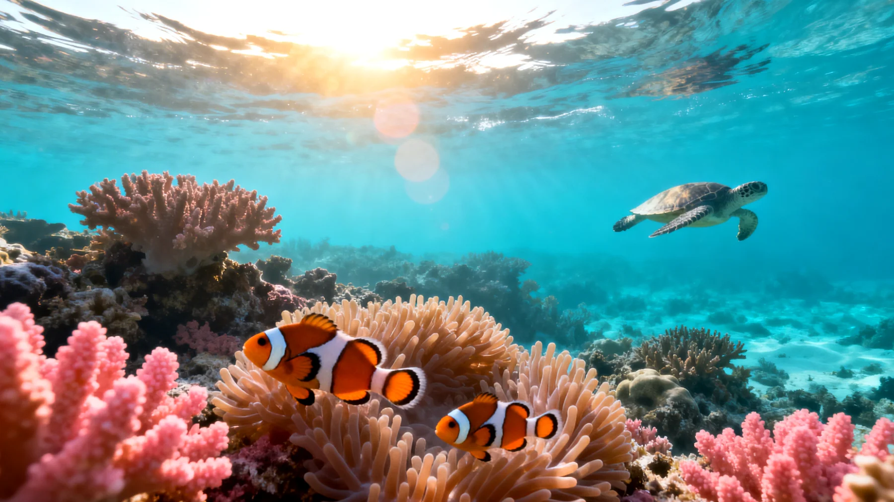 Schnorcheln ist die kostengünstigste Variante, das Riff zu erleben, und ehrlich gesagt braucht man nicht unbedingt einen Tauchschein, um überwältigt zu werden. Schon in wenigen Metern Tiefe schwimmen Clownfische zwischen Anemonen, gleiten majestätische Meeresschildkröten vorbei und bilden Fischschwärme kaleidoskopische Muster. Die Korallenformationen reichen von tellerförmigen Strukturen bis zu verzweigten Gebilden, die an Geweihe erinnern. Manche Korallen leuchten in Pink, andere in Violett oder Neongrün – eine Farbpalette, die kein Künstler je erfinden könnte.